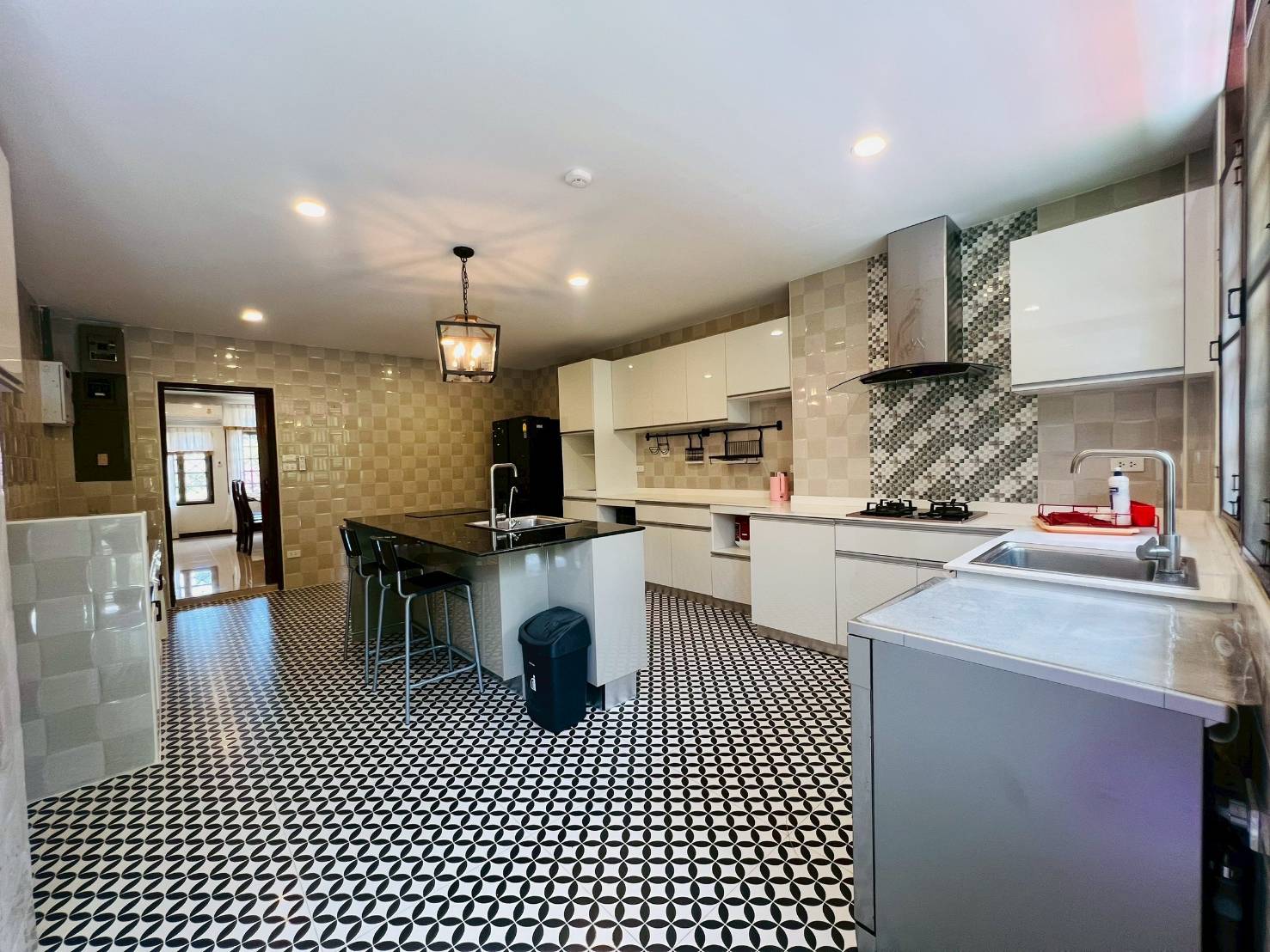 - Downstairs: 1 bedroom (convertible to a home office), 1 bathroom (with shower), living area, Western-style kitchen.