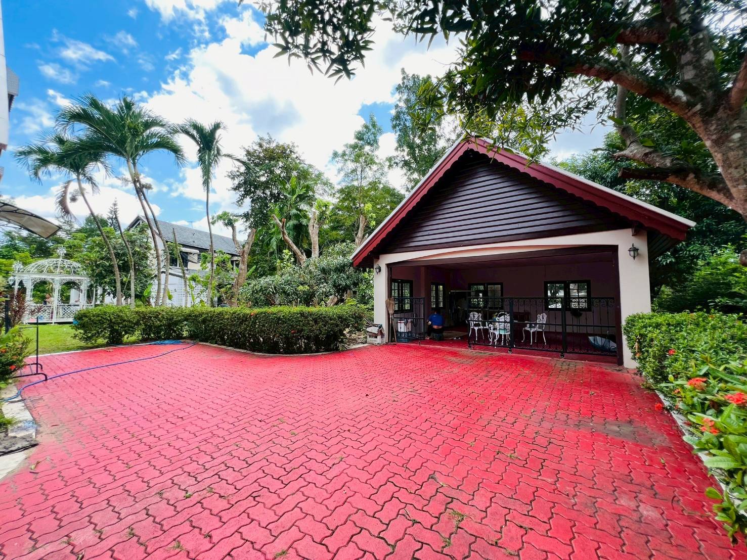 - Outside: Maid’s room with separate bathroom, laundry/storage room, and separate garage.